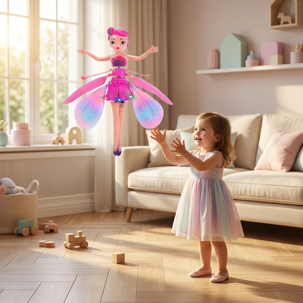 La Hada Voladora Mágica combina juego, sorpresa y movimiento. Los niños pueden mantenerla en el aire y dirigir su vuelo usando solo la mano, creando una experiencia mágica, divertida y segura.